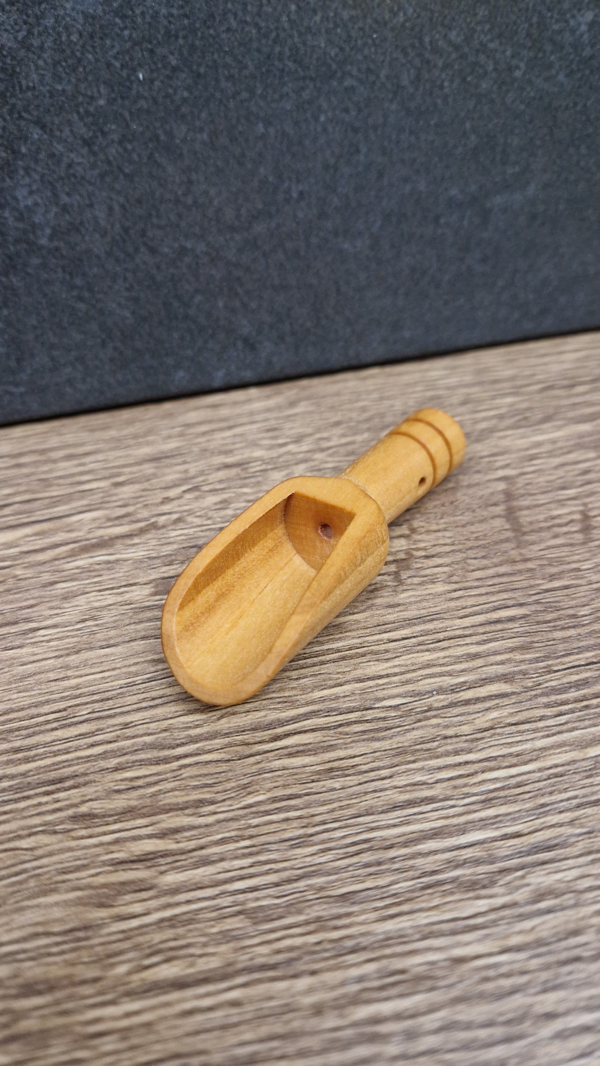 Perfekt um die Gewürzmischungen kontrolliert zu dosieren. Die Gewürzschaufel besteht aus Naturholz.