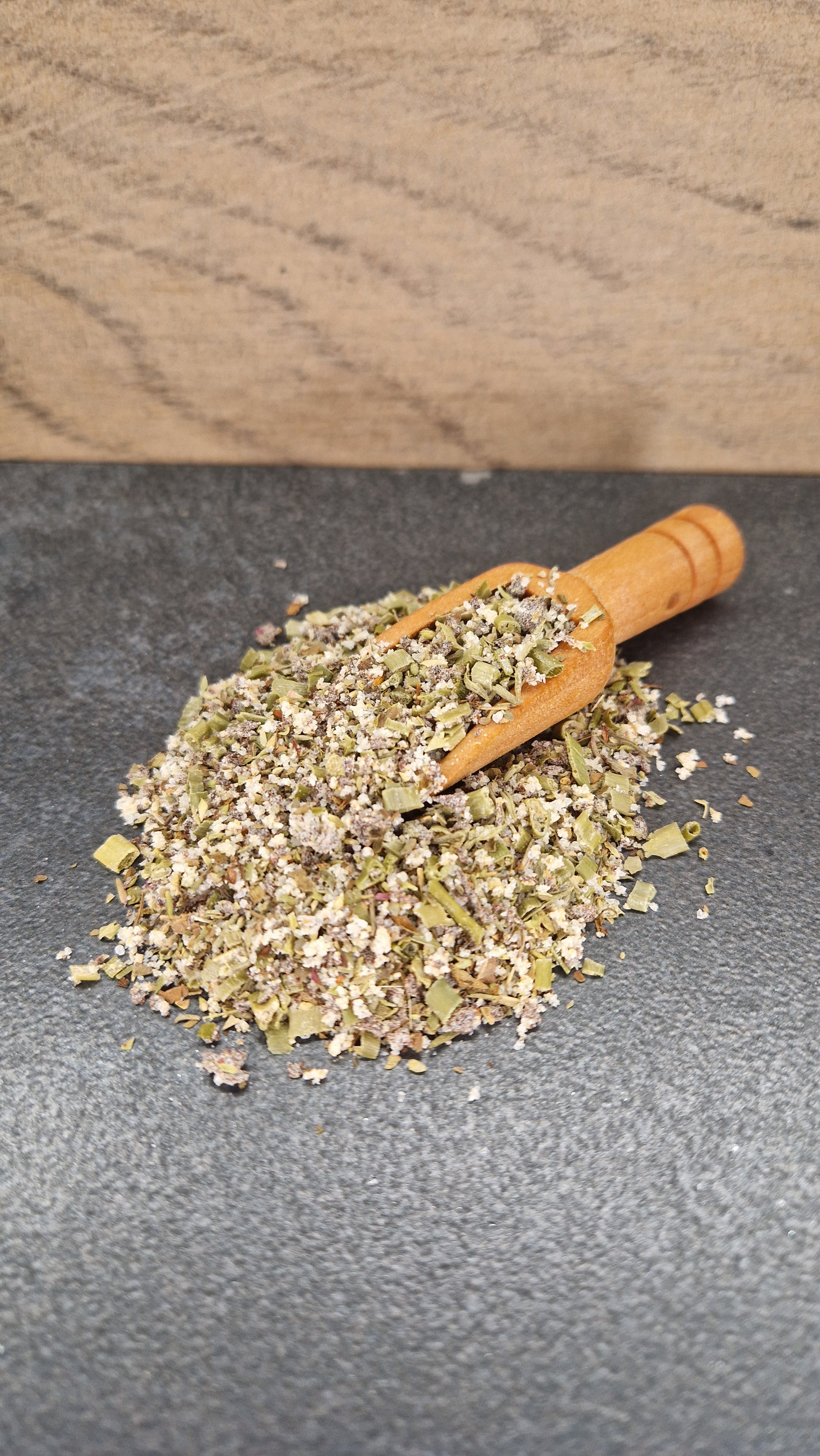 Meersalz, Tomatenflocken (Tomate, Maisstärke), Basilikum, Knoblauch, Oregano, Schnittlauch, Thymian